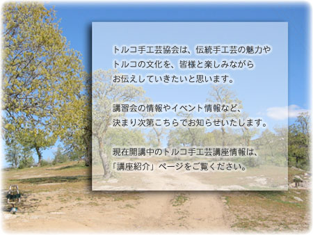 協会概要 トルコ紹介 トルコ手工芸 講師 講座紹介 お知らせ お問い合わせ